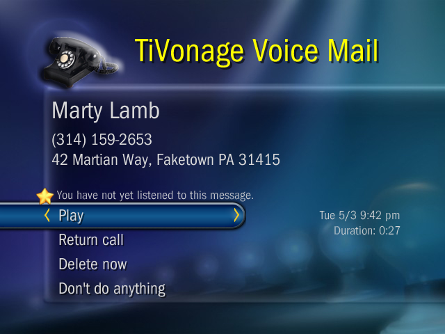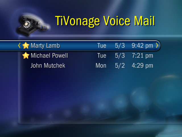 TiVonage allows Vonage customers to manage their voice mail, including: